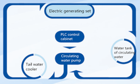 During the operation of power generating equipment, cooling water brings away the heat of the unit and discharge into circulating water pool. The circulating water is sent to the cooler installed in the tail water through the circulating water pump. Heat exchange of circulating water takes place with the river water outside the circulating cooler. The temperature of the circulating water will be lowered to meet the demand of the cooling water temperature of the units, and then it will be sent to the units. The cooling water will be sent back to the circulating water through the units in operation. The circulating water cooling system is suitable for cooling the hydropower generation set with poor water quality.